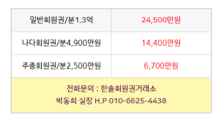 문의는 한솔회원권으로 부탁드립니다.