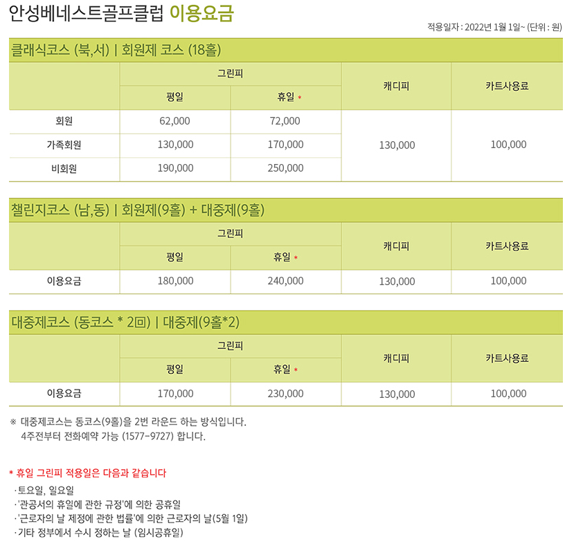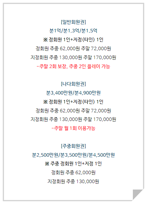 나다회원권, 주중회원권으로 구분되어 있습니다.