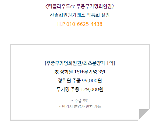 티클라우드cc주중무기명회원권 매매 안내드립니다.