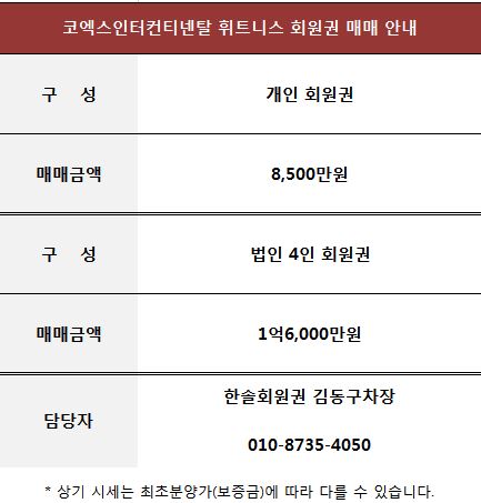 코엑스인터컨티넨탈호텔 휘트니스 회원권 정보 안내