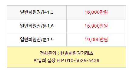 매매상담 - 한솔회원권거래소 박동희 실장 010.6625.4438