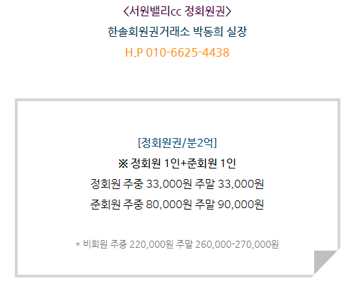오늘은 서원밸리cc회원권에 대해서 알아보도록