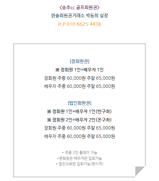 매매상담 - 한솔회원권거래소 박동희 실장 010.6625.4438