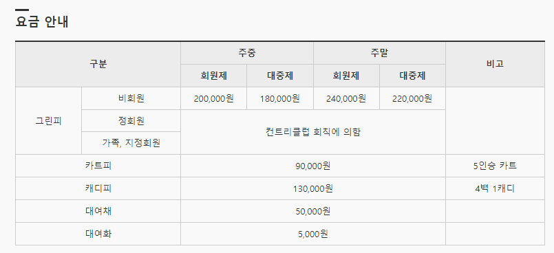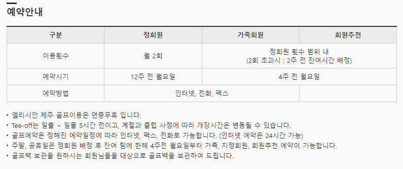 엘리시안제주cc 이용요금 및 예약안내