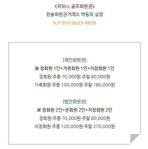 매매상담 - 한솔회원권거래소 박동희 실장 010.6625.4438