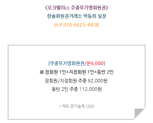 골프회원권/오크밸리 오크밸리cc주중무기명회원권 시세 확인하기! 한솔회원권거래소 작성함 2022. 1. 25. 16:55 페이스북에 공유 카카오스토리에 공유 네이버에 공유 트위터에 공유 구글플러스에 공유 + 안녕하세요. 한솔회원권거래소 박동희 실장입니다. 오늘은 오크밸리cc주중무기명회원권에 대해 알아보도록 하겠습니다. 매매상담 - 한솔회원권거래소 박동희 실장 010.6625.4438 오크밸리cc 주중무기명회원권은 정회원 1인과 지정회원 1인, 동반인 2인 입회로 구성되어 있습니다. 더욱 궁금하신 부분이 있다면 한솔회원권으로 문의하여 주시기 바랍니다. ▼▼▼ 오크밸리cc 오시는 길 골프/콘도/휘트니스 회원권 한솔회원권거래소 빠른상담을 원하신다면 아래의 이미지를 클릭하여 주시기 바랍니다. ▼▼▼ 공유하기 게시글 관리 한솔회원권거래소 저작자표시 (새창열림) '골프회원권/오크밸리' 다른 게시물 보기 더보기 2022.01.25 오크밸리cc회원권 매매 안내드립니다. 2021.10.27 2021.10.27 오크밸리cc회원권 매매안내 2021.02.04 HDC오크밸리cc 주중회원권 추천매물 매매시세 (2021.02.04.) 안내 2019.02.11 오크밸리cc 주중회원권 급매물 매매시세 안내