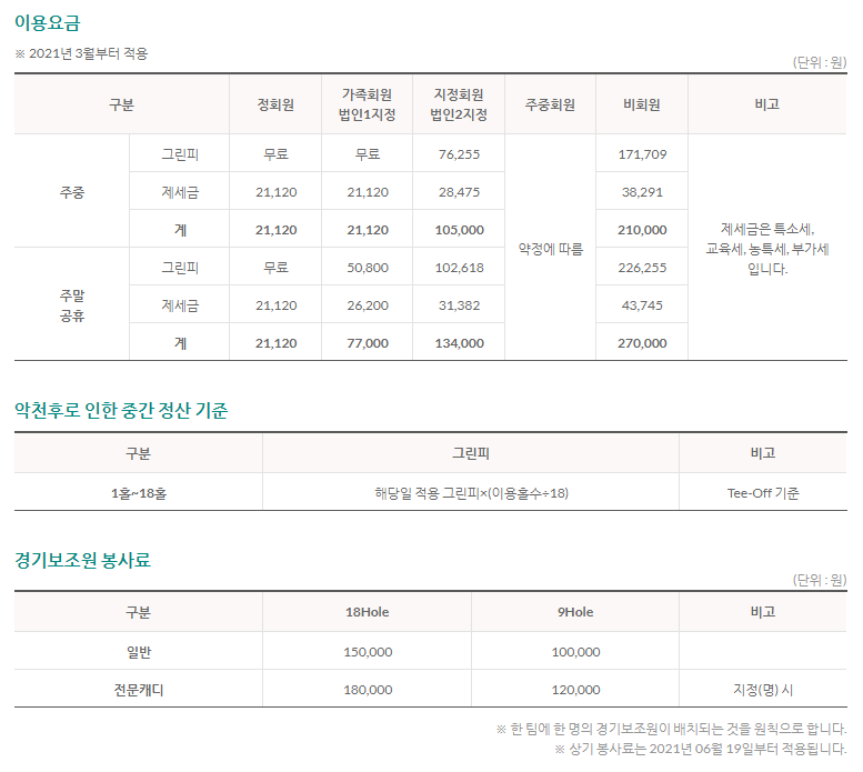주말 그린피가 면제되며 다양한 혜택이 있으니
