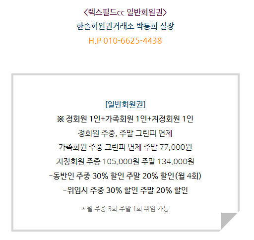 렉스필드cc회원권은 일반회원권으로