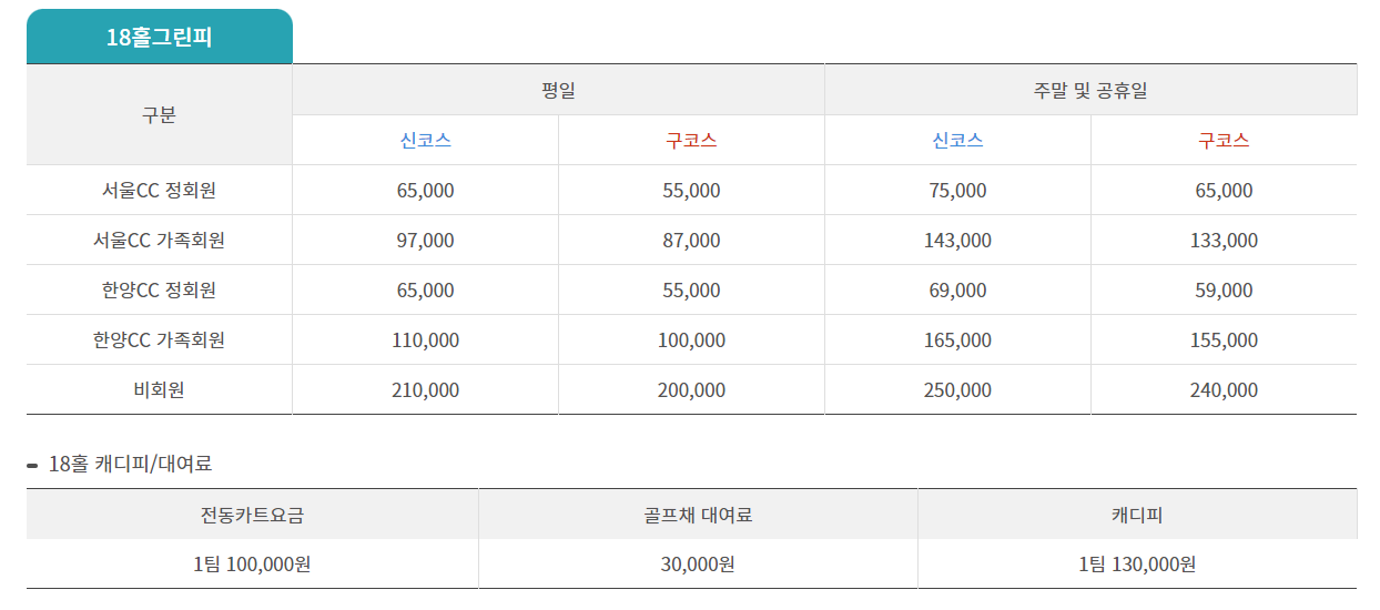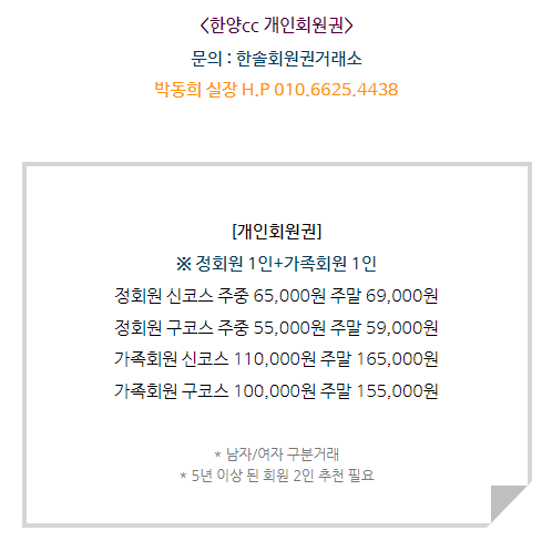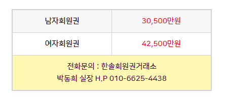 남자와 여자회원권이 구분되어 거래된다는 특징을