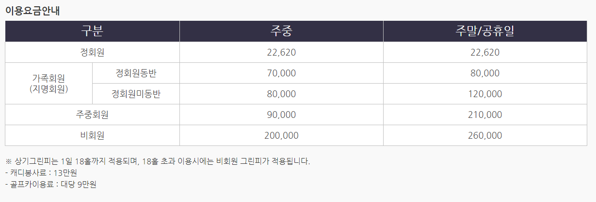 프리스틴밸리cc 이용요금 및 예약안내
