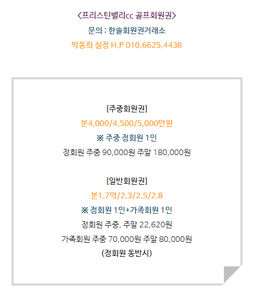 프리스틴밸리cc회원권은 주중회원권,