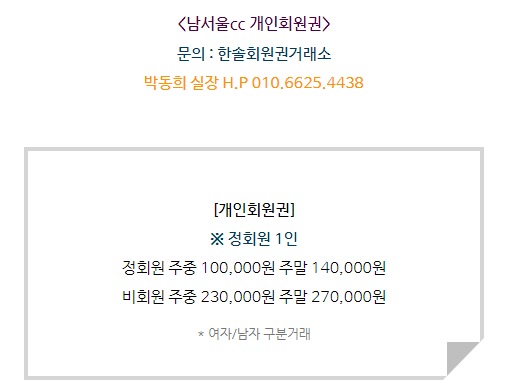 골프회원권/남서울 남서울cc회원권 매매 안내드립니다. 한솔회원권거래소 작성함 2022. 2. 14. 13:22 페이스북에 공유 카카오스토리에 공유 네이버에 공유 트위터에 공유 구글플러스에 공유 + 안녕하세요. 한솔회원권거래소 박동희 실장입니다. 오늘은 남서울cc회원권에 대해서 알아보도록 하겠습니다. 매매상담 - 한솔회원권거래소 박동희 실장 010.6625.4438 남서울cc회원권은 정회원 1인 입회로 구성되어 있습니다. 여자와 남자회원권이 구분되어 거래되는 회원권으로 더욱 궁금하신 부분이 있다면 한솔회원권으로 문의하여 주시기 바랍니다. ▼▼▼ 남서울cc 이용요금 및 예약안내 남서울cc 오시는 길 골프/콘도/휘트니스 회원권 한솔회원권거래소 빠른상담이 원하신다면 아래의 이미지를 클릭하여 주시기 바랍니다. ▼▼▼ 공유하기 게시글 관리 한솔회원권거래소 저작자표시 (새창열림) '골프회원권/남서울' 다른 게시물 보기 더보기 2022.05.23 남서울cc회원권 매매 안내드립니다. 2022.03.07 남서울cc회원권 매매 안내드립니다. 2021.12.07 남서울cc회원권 매매안내 2021.09.24 남서울cc골프회원권 시세 & 혜택안내
