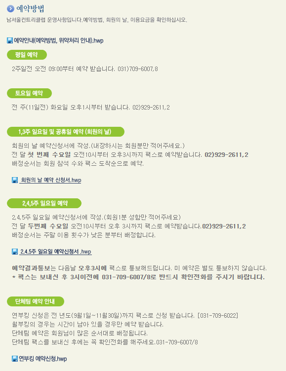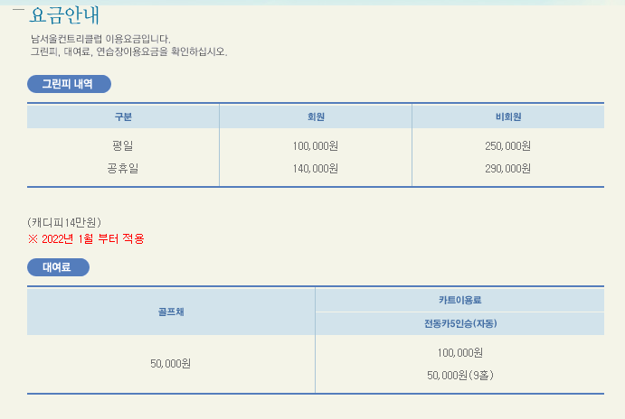 남서울cc 이용요금 및 예약안내