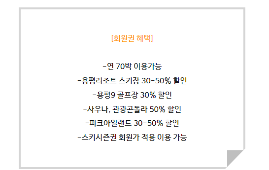 스키시즌권 회원가 적용 이용 가능 등의 혜택을 보유하고 있습니다.