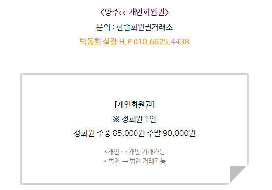 양주cc회원권은 개인회원권으로