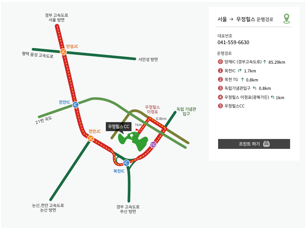우정힐스cc 오시는 길