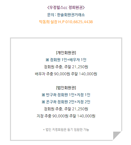 우정힐스cc회원권은 개인회원권과