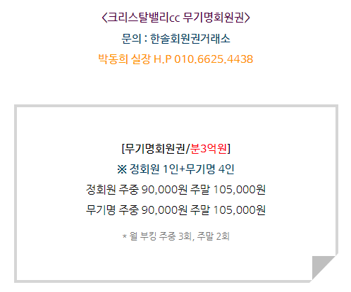 크리스탈밸리cc회원권 매매 안내드립니다.