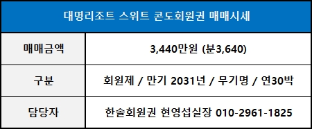 대명리조트 스위트 콘도회원권 추천매물 매매시세 (2022.02.16.) 안내 _ 대명콘도회원권 소노호텔앤리조트