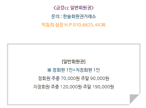 골프회원권/금강 금강cc회원권 매매 안내드립니다. 한솔회원권거래소 작성함 2022. 2. 16. 13:28 페이스북에 공유 카카오스토리에 공유 네이버에 공유 트위터에 공유 구글플러스에 공유 + 안녕하세요. 한솔회원권거래소 박동희 실장입니다. 오늘은 금강cc회원권에 대해서 알아보도록 하겠습니다. 매매상담 - 한솔회원권거래소 박동희 실장 010.6625.4438 금강cc회원권은 일반회원권으로 정회원 1인과 지정회원 1인 입회로 구성되어 있습니다. 더욱 궁금하신 부분이 있다면 한솔회원권으로 문의 부탁드립니다. ▼▼▼ 금강cc 이용요금 및 예약안내 금강cc 오시는 길 골프/콘도/휘트니스 회원권 한솔회원권거래소 빠른상담을 원하신다면 아래의 이미지를 클릭하여 주시기 바랍니다. ▼▼▼ 공유하기 게시글 관리 한솔회원권거래소 저작자표시 (새창열림) '골프회원권/금강' 다른 게시물 보기 더보기 2022.05.06 금강cc회원권 매매 안내드립니다. 2022.04.14 금강cc회원권 매매 안내드립니다. 2022.01.07 금강cc회원권 매매 안내드립니다. 2021.12.06 금강cc회원권 매매안내