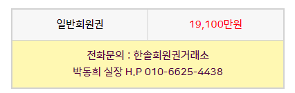 골프회원권/금강 금강cc회원권 매매 안내드립니다. 한솔회원권거래소 작성함 2022. 2. 16. 13:28 페이스북에 공유 카카오스토리에 공유 네이버에 공유 트위터에 공유 구글플러스에 공유 + 안녕하세요. 한솔회원권거래소 박동희 실장입니다. 오늘은 금강cc회원권에 대해서 알아보도록 하겠습니다. 매매상담 - 한솔회원권거래소 박동희 실장 010.6625.4438 금강cc회원권은 일반회원권으로 정회원 1인과 지정회원 1인 입회로 구성되어 있습니다. 더욱 궁금하신 부분이 있다면 한솔회원권으로 문의 부탁드립니다. ▼▼▼ 금강cc 이용요금 및 예약안내 금강cc 오시는 길 골프/콘도/휘트니스 회원권 한솔회원권거래소 빠른상담을 원하신다면 아래의 이미지를 클릭하여 주시기 바랍니다. ▼▼▼ 공유하기 게시글 관리 한솔회원권거래소 저작자표시 (새창열림) '골프회원권/금강' 다른 게시물 보기 더보기 2022.05.06 금강cc회원권 매매 안내드립니다. 2022.04.14 금강cc회원권 매매 안내드립니다. 2022.01.07 금강cc회원권 매매 안내드립니다. 2021.12.06 금강cc회원권 매매안내