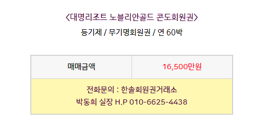 대명리조트 노블리안 골드 콘도회원권은