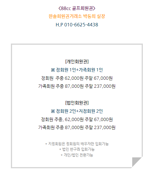 88cc회원권은 개인회원권과