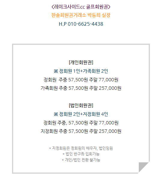 골프회원권/레이크사이드 레이크사이드cc회원권 매매 안내드립니다. 한솔회원권거래소 작성함 2022. 2. 21. 14:31 페이스북에 공유 카카오스토리에 공유 네이버에 공유 트위터에 공유 구글플러스에 공유 + 안녕하세요. 한솔회원권거래소 박동희 실장입니다. 오늘은 레이크사이드cc회원권에 대해서 알아보도록 하겠습니다. 매매상담 - 한솔회원권거래소 박동희 실장 010.6625.4438 레이크사이드cc회원권은 개인회원권과 법인회원권으로 구분되어 있습니다. 더욱 궁금하신 부분이나 기타 문의사항이 있다면 한솔회원권으로 문의 부탁드립니다. ▼▼▼ 레이크사이드cc 이용요금 및 예약안내 레이크사이드cc 오시는 길 골프/콘도/휘트니스 회원권 한솔회원권거래소 빠른상담을 원하신다면 아래의 이미지를 클릭하여 주시기 바랍니다. ▼▼▼ 공유하기 게시글 관리 한솔회원권거래소 저작자표시 (새창열림) '골프회원권/레이크사이드' 다른 게시물 보기 더보기 2022.04.28 레이크사이드cc회원권 매매 안내드립니다. 2022.03.23 레이크사이드cc회원권 매매 안내드립니다. 2021.12.14 레이크사이드cc회원권 매매안내 2021.11.26 레이크사이드cc회원권 매매안내