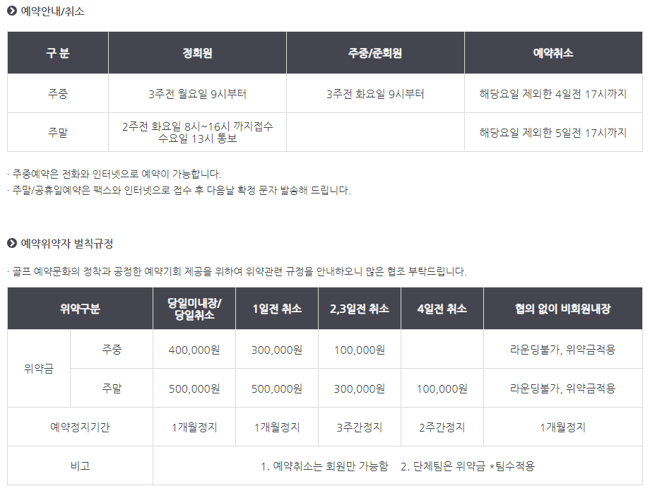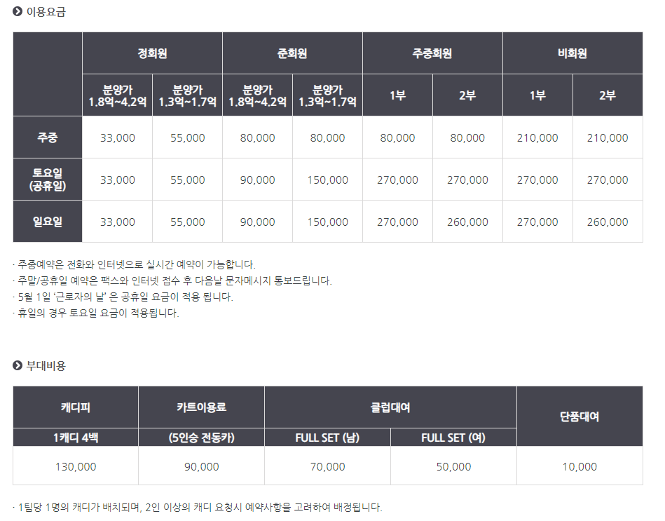 서원밸리cc 이용요금 및 예약안내