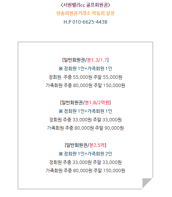 서원밸리cc회원권은 일반회원권으로