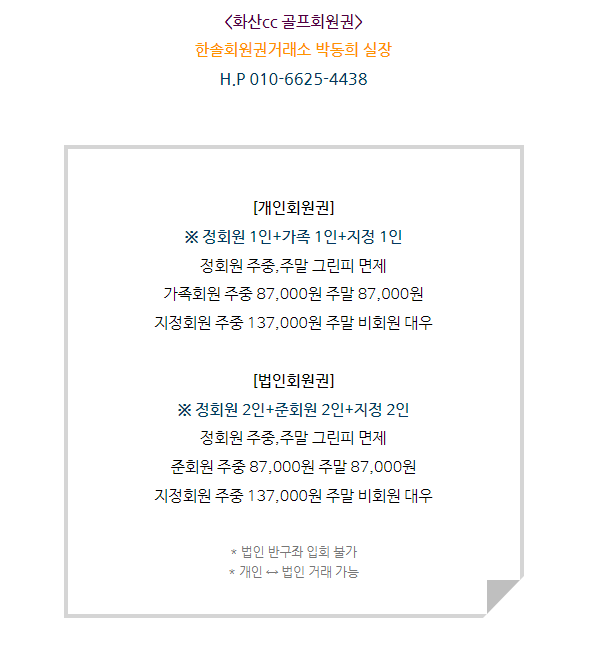화산cc회원권은 개인회원권과