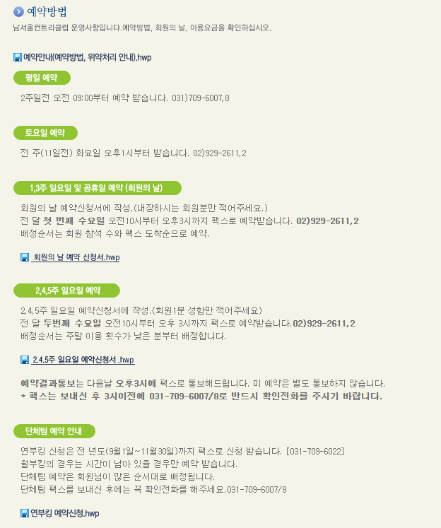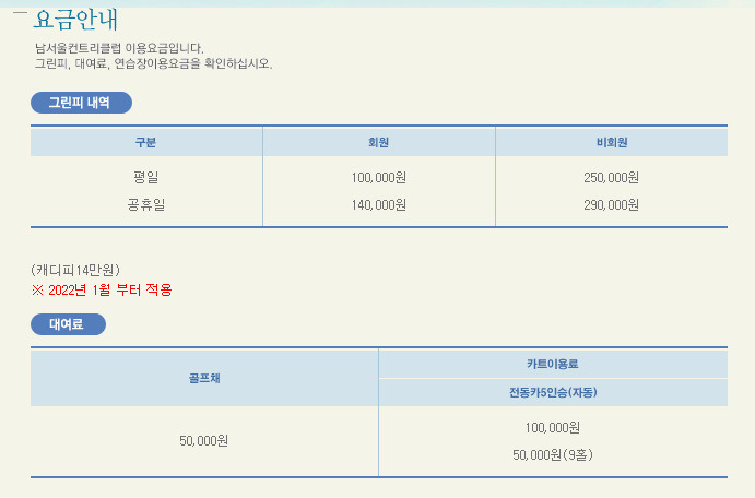 남서울cc 이용요금 및 예약안내