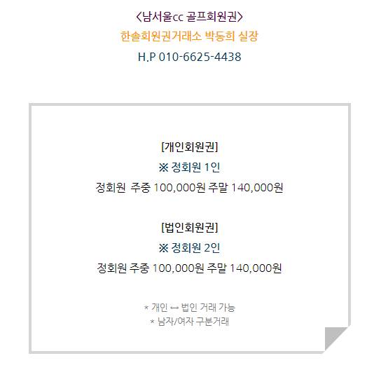 매매상담 - 한솔회원권거래소 박동희 실장 010.6625.4438