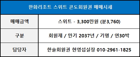 한화리조트 거제 스위트 콘도회원권 추천매물 매매시세 (2022.03.09.) 안내 _ 한화콘도회원권