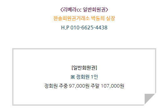 골프회원권/리베라 리베라cc회원권 매매 안내드립니다. 한솔회원권거래소 작성함 2022. 3. 14. 13:46 페이스북에 공유 카카오스토리에 공유 네이버에 공유 트위터에 공유 구글플러스에 공유 + 안녕하세요. 한솔회원권거래소 박동희 실장입니다. 오늘은 리베라cc회원권에 대해서 알아보도록 하겠습니다. 매매상담 - 한솔회원권거래소 박동희 실장 010.6625.4438 리베라cc회원권은 일반회원권으로 정회원 1인 입회로 구성되어 있습니다. 회원권의 종류에 따라서 시세와 혜택에 차이가 있기 때문에 더욱 궁금하신 부분이 있다면 한솔회원권으로 문의 부탁드립니다. ▼▼▼ 리베라cc 이용요금 및 예약안내 리베라cc 오시는 길 골프/콘도/휘트니스 회원권 한솔회원권거래소 빠른상담을 원하신다면 아래의 이미지를 클릭하여 주시기 바랍니다. ▼▼▼ 공유하기 게시글 관리 한솔회원권거래소 저작자표시 (새창열림) '골프회원권/리베라' 다른 게시물 보기 더보기 2022.05.23 리베라cc회원권 매매 안내드립니다. 2021.05.21 리베라cc 골프회원권 혜택안내 2021.03.22 리베라cc회원권 혜택과 정보 2021.02.18 리베라cc회원권 혜택과 정보 (2021.02.18)