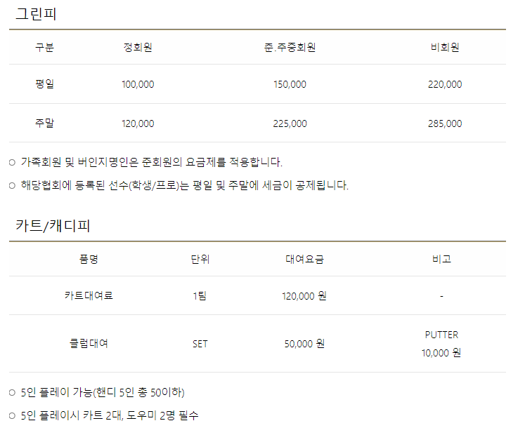 주중가족, 일반회원권으로 구분되어