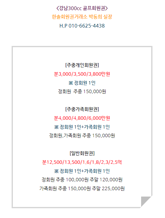 강남300cc회원권은 주중개인,