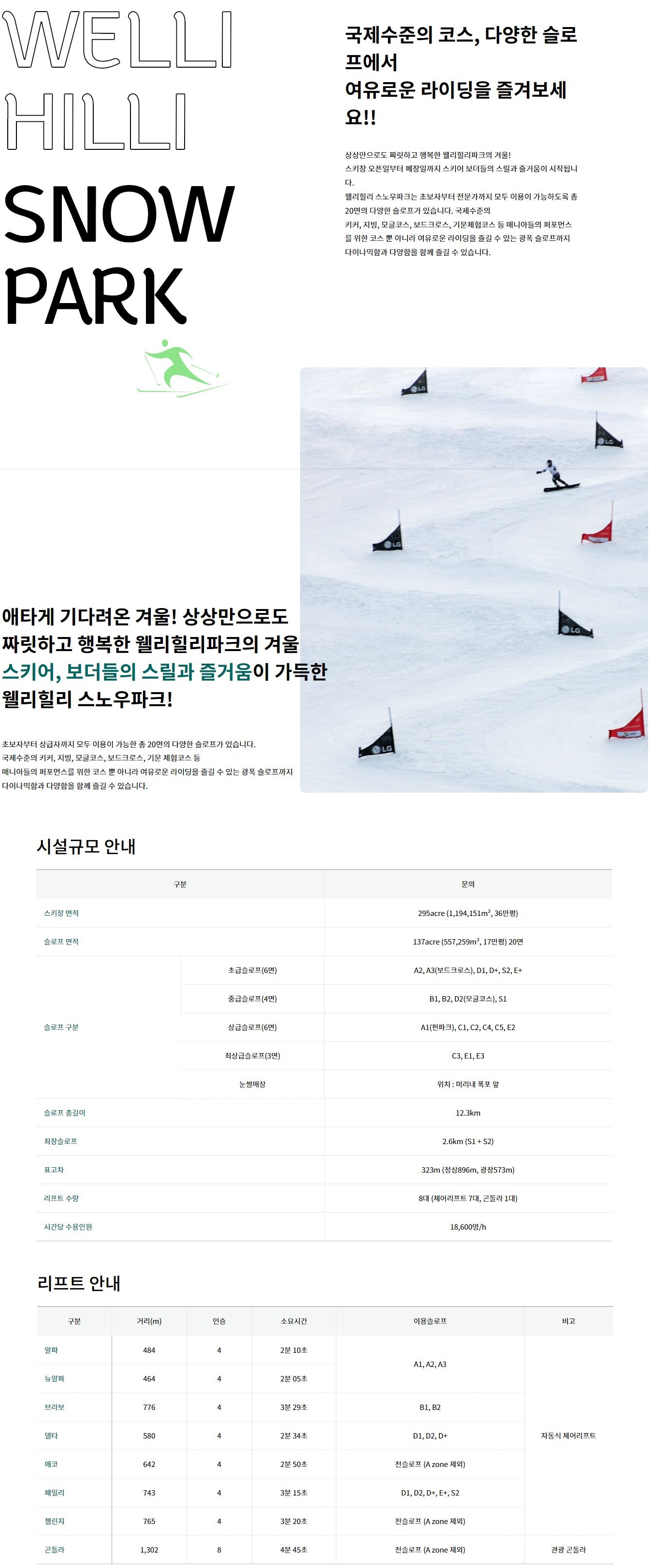 부대시설 : 스키장, 골프장, 실내수영장, 고카트, 루지 등