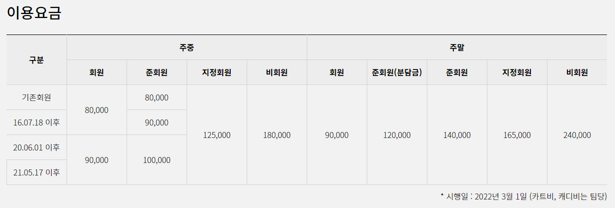 가족회원권으로 구분되어 있습니다. 회원권의