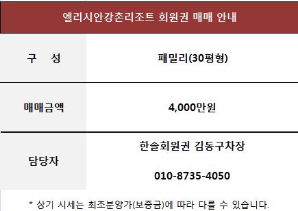 엘리시안강촌리조트 회원권 매매 정보 안내