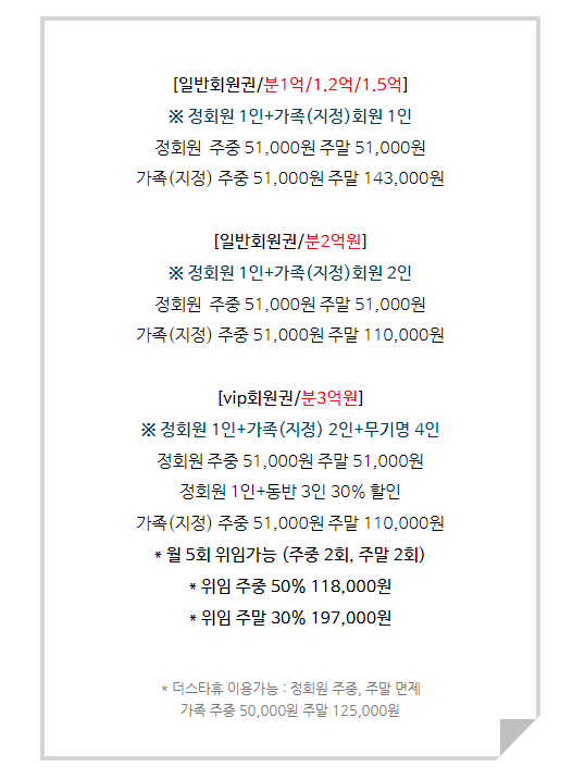 따라서 시세와 혜택에 차이가 생기는 회원권이기