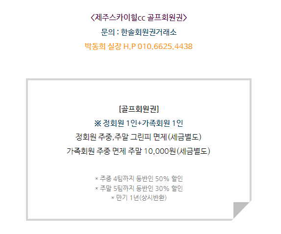 스카이힐cc회원권은 정회원 1인과