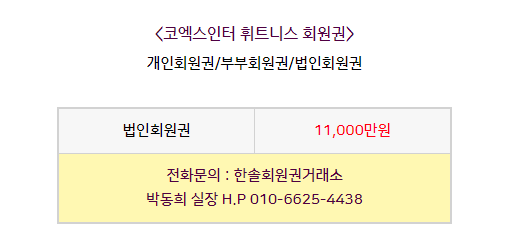 코엑스인터 휘트니스 회원권은 개인회원권과