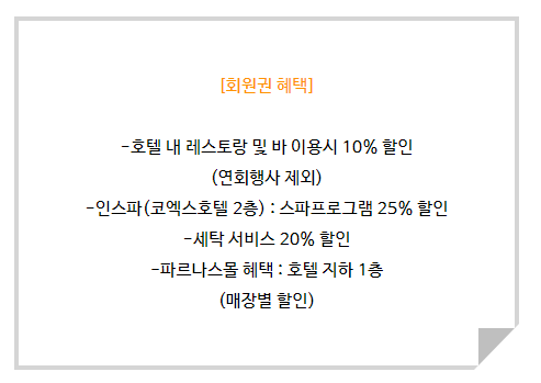 파르나스몰 매장별 할인 등의 혜택을 보유하고 있습니다.
