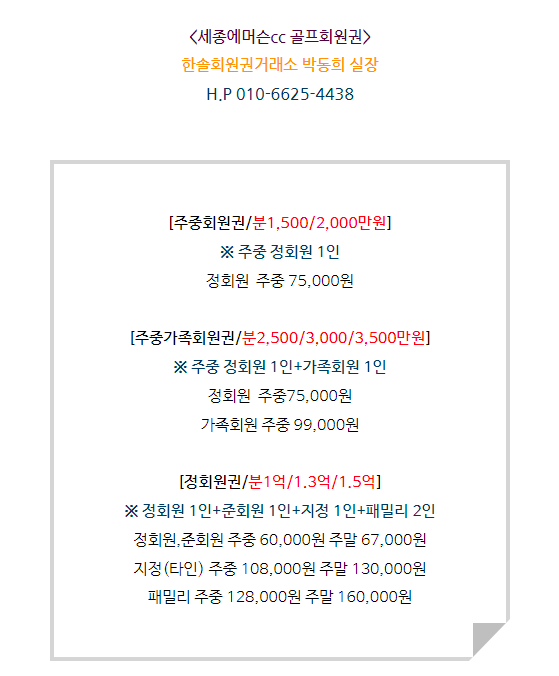 세종에머슨cc회원권은 주중회원권과