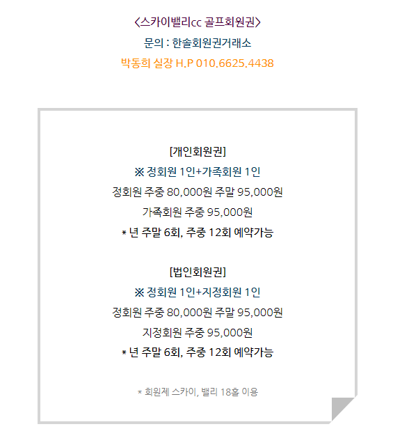 스카이밸리cc회원권은 개인회원권과