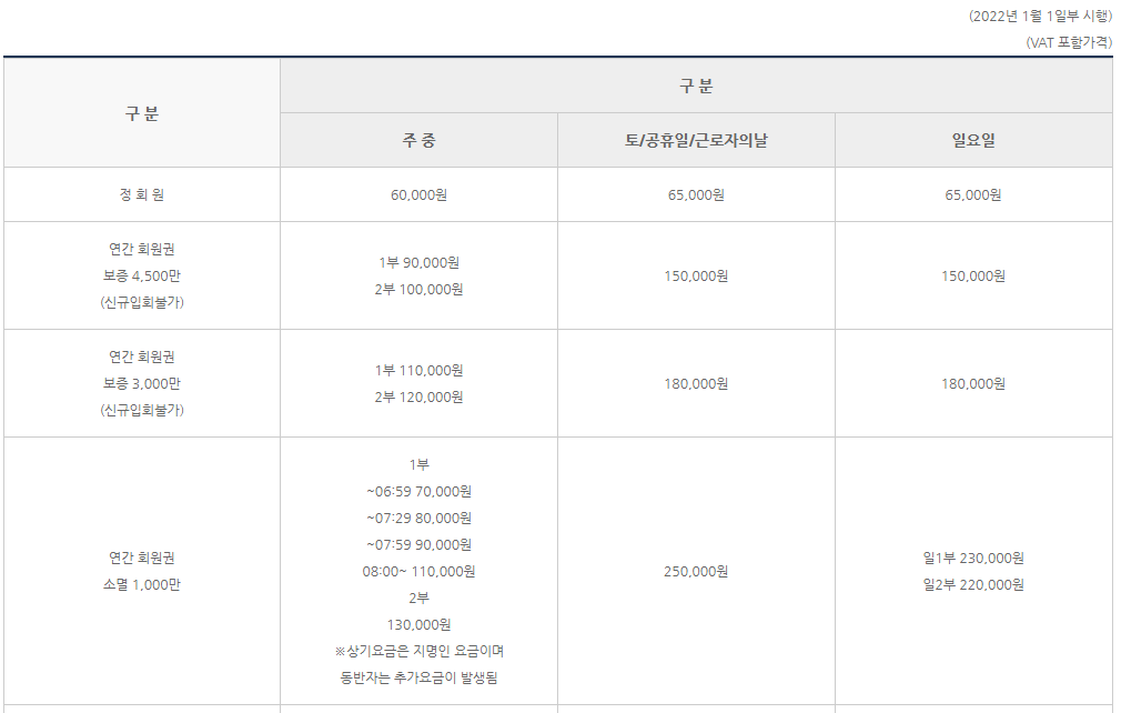 가족회원 1인 입회로 구성되어 있습니다. 현재