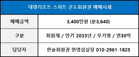 대명리조트 스위트 콘도회원권 급매물 매매시세 (2022.04.12.) 안내 _ 소노호텔앤리조트