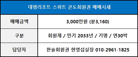 대명리조트 스위트 콘도회원권 급매물 매매시세 (2022.04.12.) 안내 _ 소노호텔앤리조트