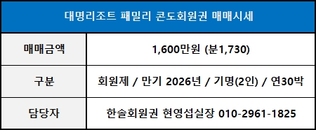 ■ 대명리조트회원권 패밀리 추천매물 안내 ■